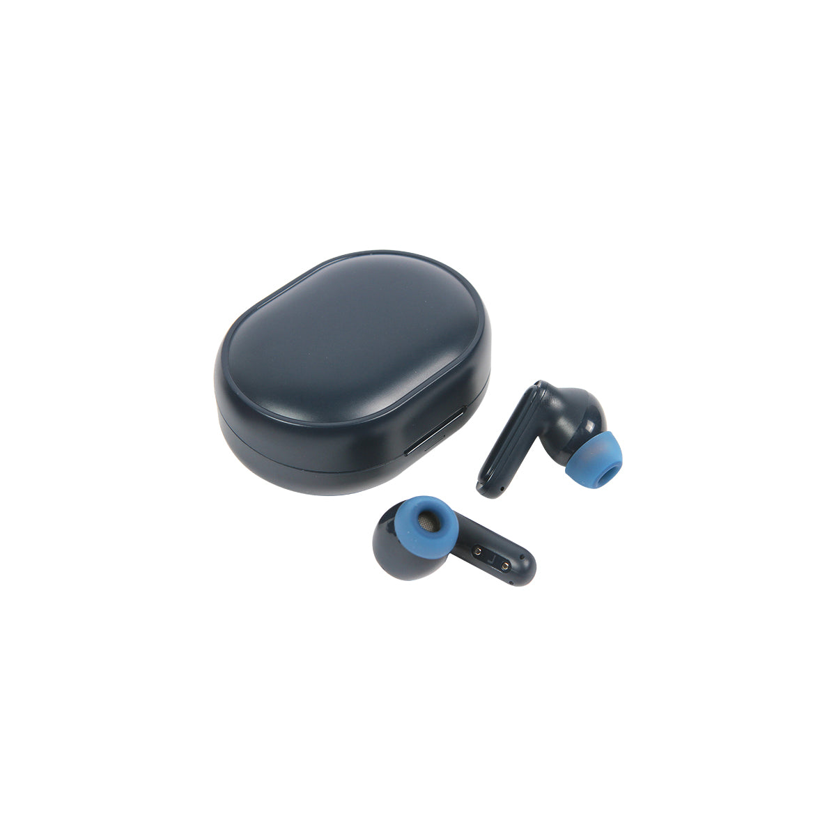 Audífonos inalámbricos con estuche, gracias a su diseño práctico y ligero los hace perfectos para llevarlos a todos lados. Cuenta con un alcance inalámbrico de 10 metros sin obstáculos. Con tiempo de reproducción de siete horas (60% Vol.), tiempo de conversación de seis horas en volúmen medio, su tiempo de carga es de aproximadamente 1.5 horas por un puerto tipo C.