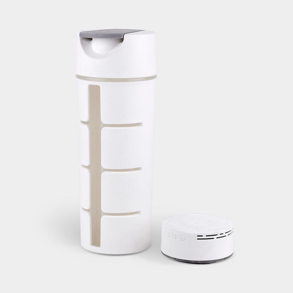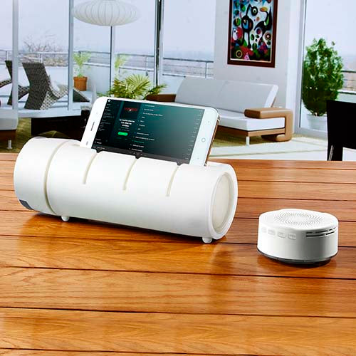 Cilindro con bocina bluetooth. Función manos libres. Controles integrados de volumen y reproducción de audio. Disparador de cámara al sincronizar con el smartphone. Base para tablet y smartphone. Bocina removible con efectos de luces. Incluye cable USB y batería recargable. Tapa de plástico con cierre de rosca y boquilla, sobretapa con cierre de presión. Caja individual incluida. Este producto por ser últimas piezas puede presentar alguna variación, no se aceptan devoluciones.